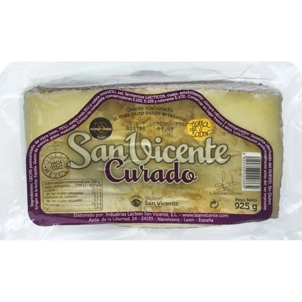 Curado indica que el queso ha pasado por un proceso de maduración que le proporciona un sabor y textura específicos, en este caso, un sabor intenso.