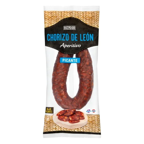 Este producto es un chorizo sarta extra picante, originario de León, España.