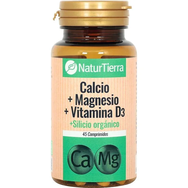 Los ingredientes principales de Calcio, Magnesio y Vitamina D3 de Naturtierra son: Carbonato de calcio, Carbonato de magnesio y Colecalciferol (Vitamina D3).