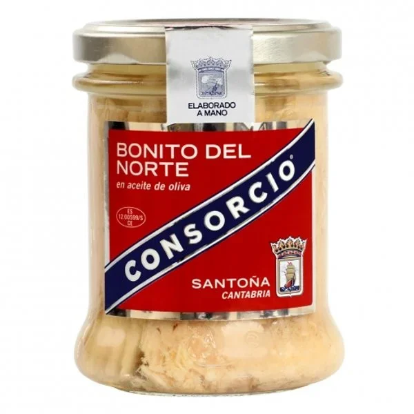 El Bonito del Norte en Aceite de Oliva Consorcio es un producto listo para consumir, ideal para ensaladas, bocadillos o como ingrediente en diversas recetas.