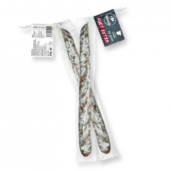 El Fuet Espetec Carrefour El Mercado es un embutido seco, elaborado con carne y grasa de cerdo.