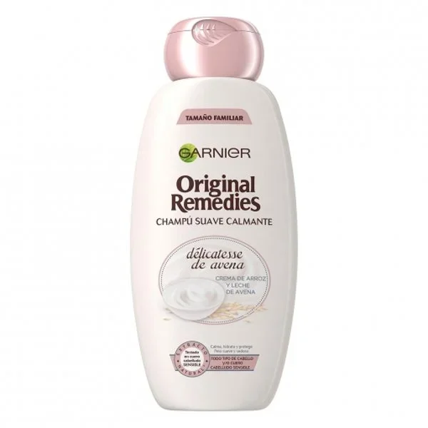 El champú suave calmante con crema de arroz y leche de avena Original Remedies viene en un envase de 600 ml.