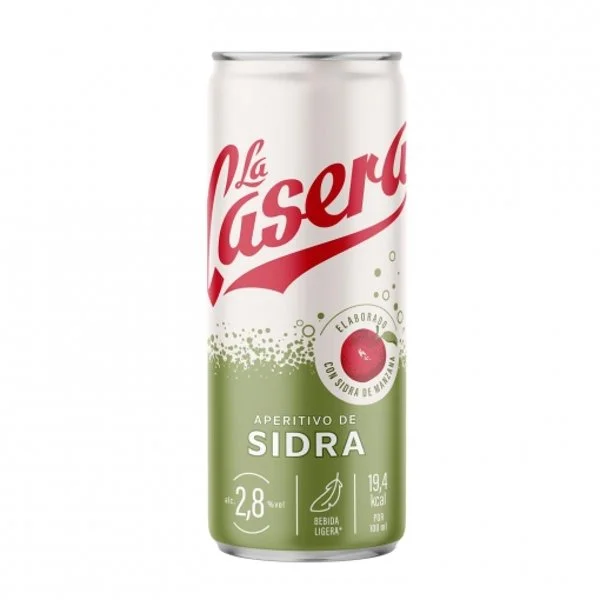 La lata del Aperitivo de sidra La Casera tiene un volumen de 33 cl (0.33 litros).