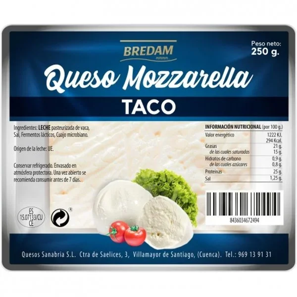 0.25 kgQueso en taco mozzarella Bredam 250 g.