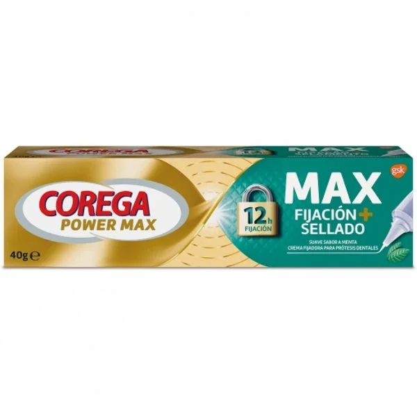 0.04 kgCrema fijadora para prótesis dental máxima fijación y sellado sabor menta Corega 40 g.