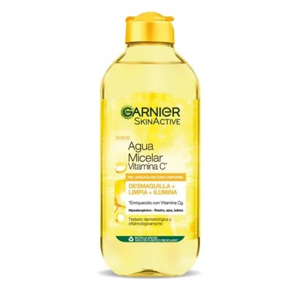 0.4 lAgua micelar con vitamina C limpia, desmaquilla e ilumina la piel apagada fórmula hipoalergénica Garnier 400 ml.