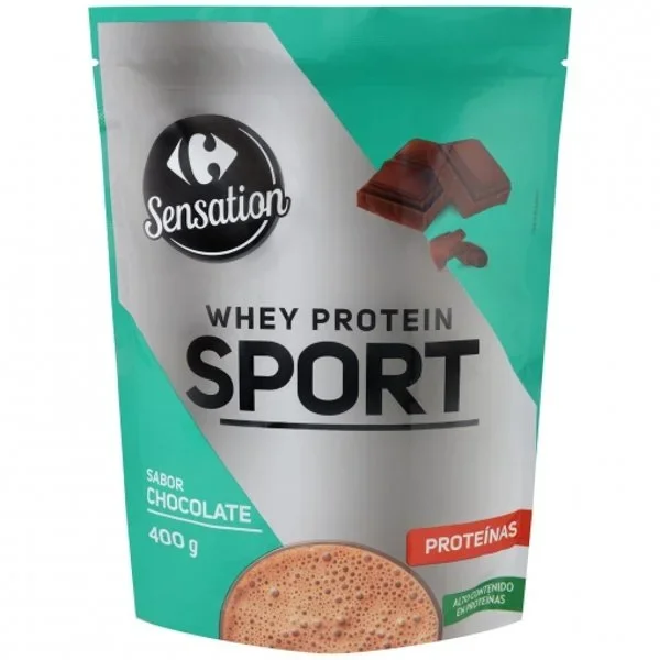 0.4 kgPreparado para batido de proteínas sabor chocolate Whey Protein Sport Sensation Carrefour doy pack 400 g.