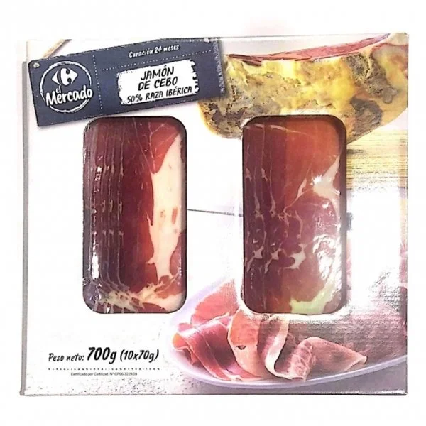 0.7 kgMaletín de Jamón de Cebo Ibérico 50% Raza Ibérica en lonchas Carrefour El Mercado 10 sobres de 70 g