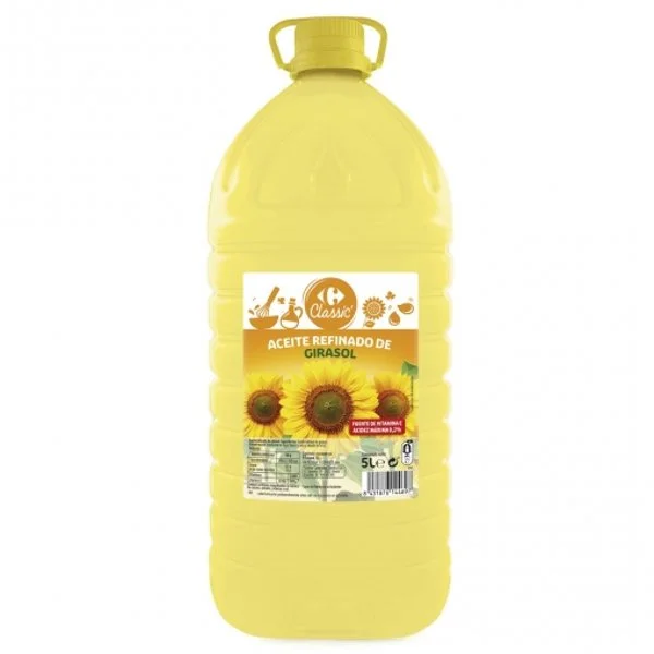 El aceite de girasol Carrefour está hecho de aceite refinado de girasol.