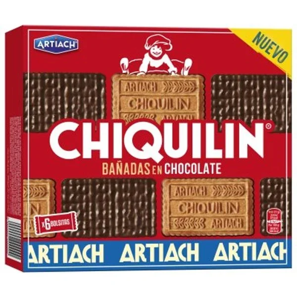 Harina de TRIGO, chocolate (cacao, azúcar, manteca de cacao, cacao desgrasado en polvo, emulgente: lecitina, aroma) (28%), azúcar, aceite de girasol alto oleico (9,5%), coco, suero LÁCTEO en polvo, jarabe de glucosa y fructosa, miel, HUEVO en polvo (equivalente a 1,7% de HUEVO), LECHE desnatada en polvo, gasificantes (carbonatos de amonio, carbonatos de sodio), sal, aromas, antioxidantes (E 304, E 306), extracto de malta de CEBADA, vitamina y sales minerales: vitamina D, carbonato de calcio y hierro. Puede contener FRUTOS DE CÁSCARA, MOSTAZA, SOJA.