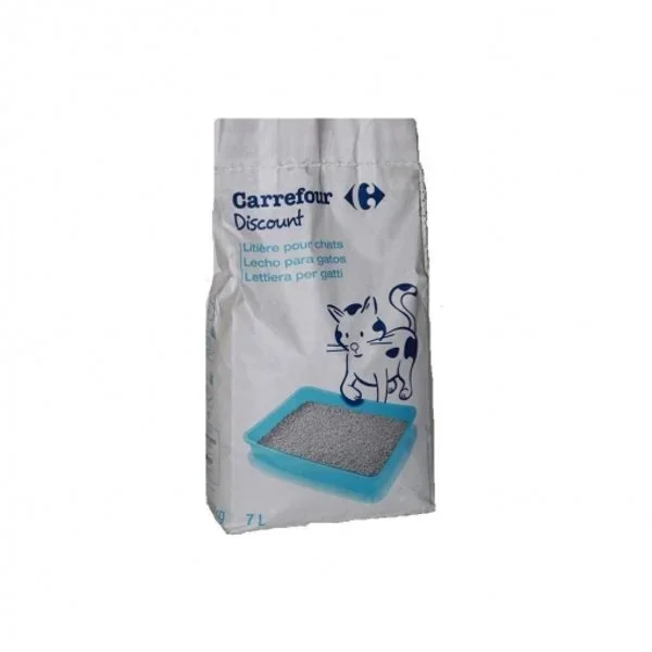 La arena absorbente para gatos es de la marca Carrefour.