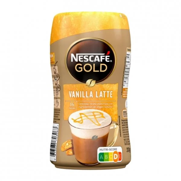 Es un café soluble con sabor a vainilla y leche, de la línea Nescafé Gold.