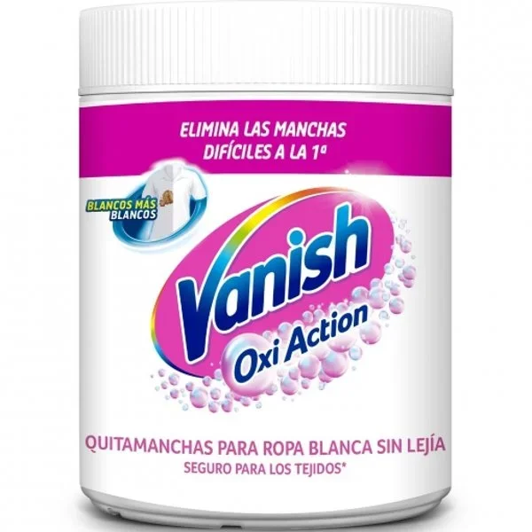 El quitamanchas Vanish Oxi Action en polvo está diseñado específicamente para ropa blanca.
