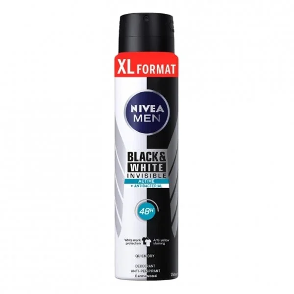 0.25 lDesodorante en spray Black&White Invisible Active Nivea Men 250 ml.