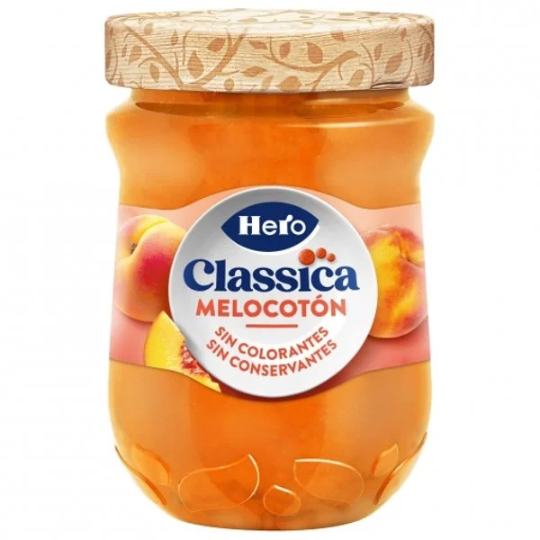 La Confitura de Melocotón Hero es un producto alimenticio, específicamente una confitura, elaborada principalmente con melocotones.