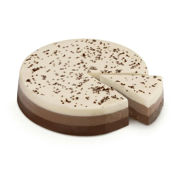 Es una tarta elaborada con tres capas de chocolate diferentes: chocolate negro, chocolate con leche y chocolate blanco.