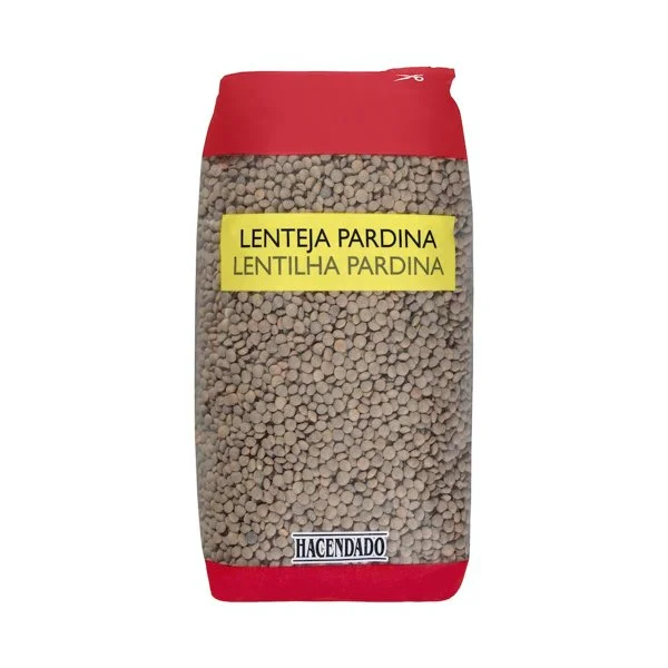 La lenteja pardina Hacendado es una variedad de lenteja conocida por su pequeño tamaño, forma redonda y color marrón terroso característico. Es una legumbre muy popular en la cocina española.