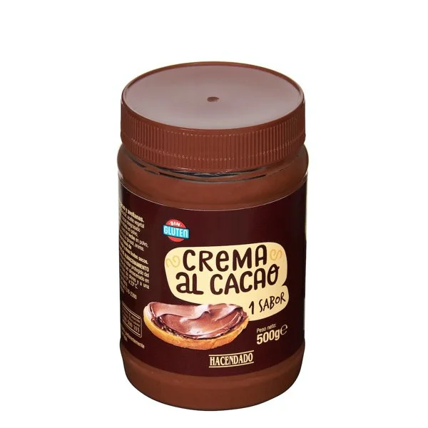 ¿La crema de cacao y avellanas Hacendado contiene gluten?