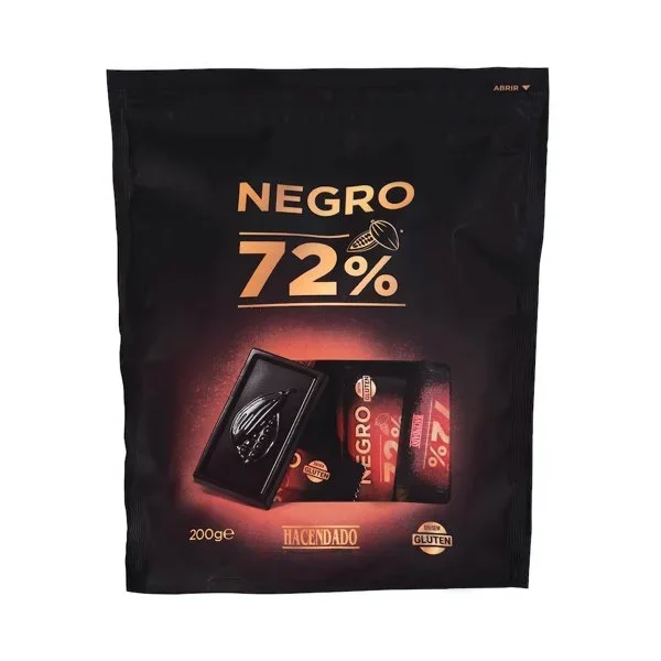 0.2 kgPorciones de Chocolate negro 72% cacao extrafino Hacendado