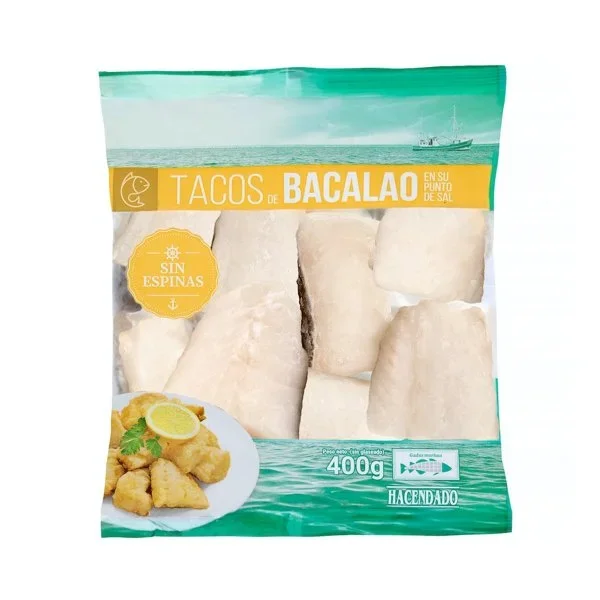 Los Tacos de Bacalao sin Espinas Hacendado congelados están elaborados con bacalao.
