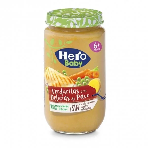 0.24 kgTarrito de verduritas con delicias de pavo desde 6 meses Hero Baby sin gluten 235 g.