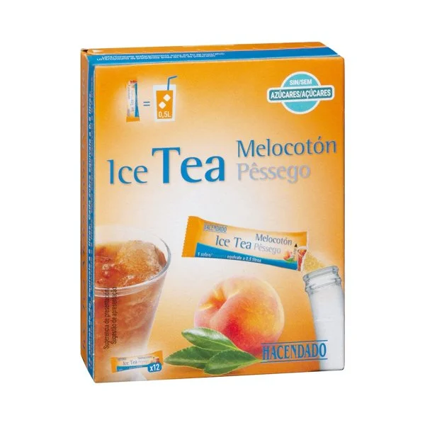 Es un concentrado en polvo sabor té de melocotón que se disuelve en agua para preparar una bebida refrescante.