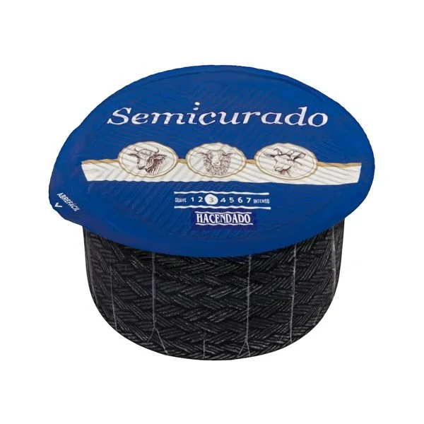 El queso semicurado mezcla Hacendado se elabora con leche pasteurizada de vaca (60% mínimo), oveja (15% mínimo) y cabra (10% mínimo).