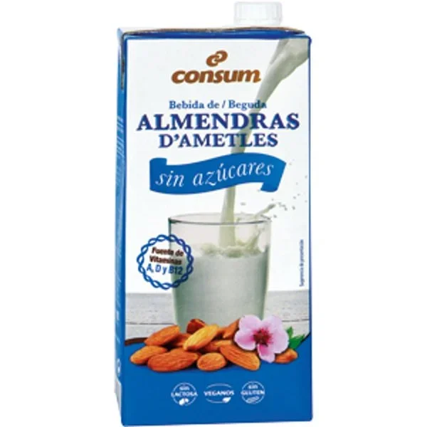 Es una bebida de almendras 0% azúcares añadidos, fortificada con vitaminas A, D y B12.