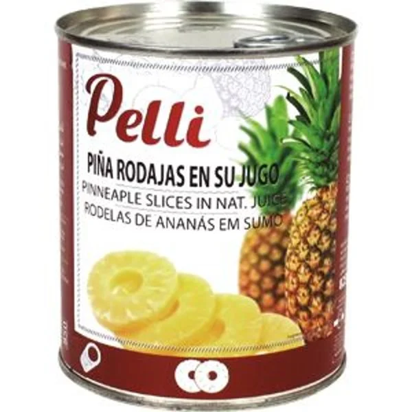 La Piña en su Jugo Pelli contiene 56 calorías por cada 100g.