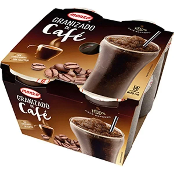 El Café Granizado Monzo es una bebida refrescante con sabor a café, presentada en un formato granizado.