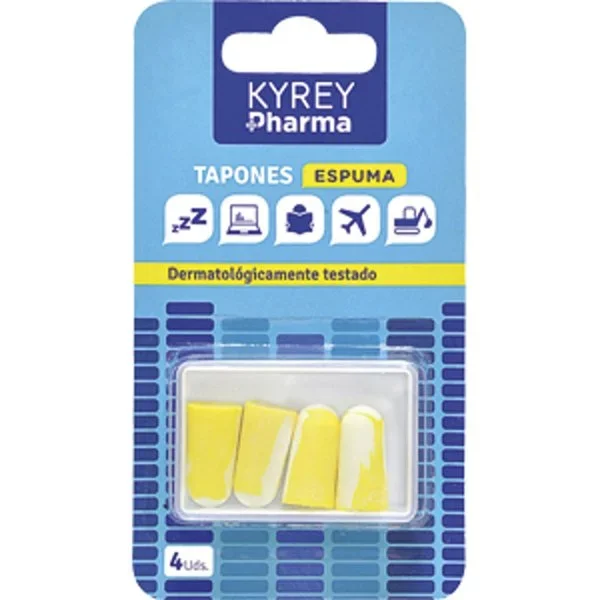 Tapones de espuma. Los tapones para los oídos Kyrey Pharma están compuestos de espuma de poliuretano de celda abierta que proporciona una adaptacion óptima al conducto auditivo y proporciona una protección óptima frente a los ruidos.