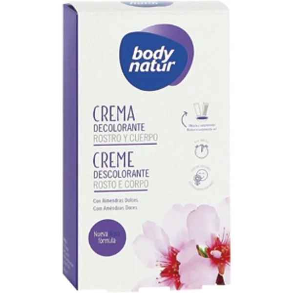 La Crema Decolorante Rostro y Cuerpo Body Natur está diseñada para aclarar el vello no deseado en el rostro y cuerpo, haciéndolo menos visible.