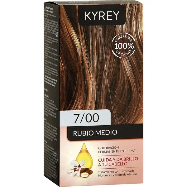 El tinte Kyrey 7/00 Rubio Medio está formulado para proporcionar un color rubio medio al cabello.