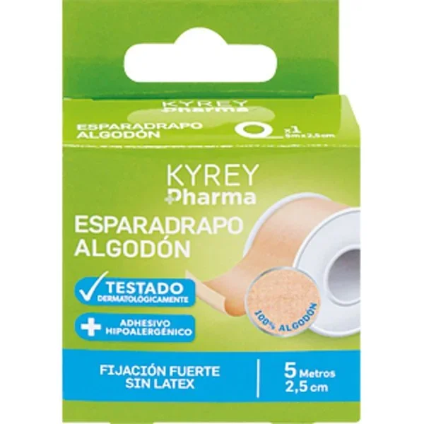 El esparadrapo de algodón Kyrey Pharma tiene una longitud de 5 metros.