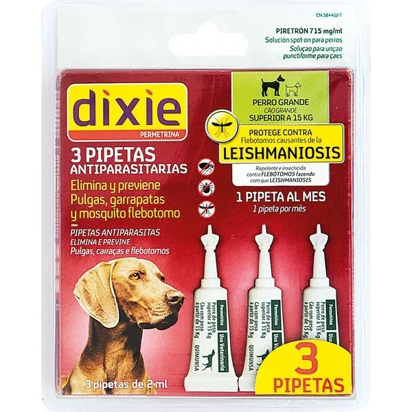 2 udPipetas permetrina para perro grande (15-60Kg) Dixie 3X2 ml