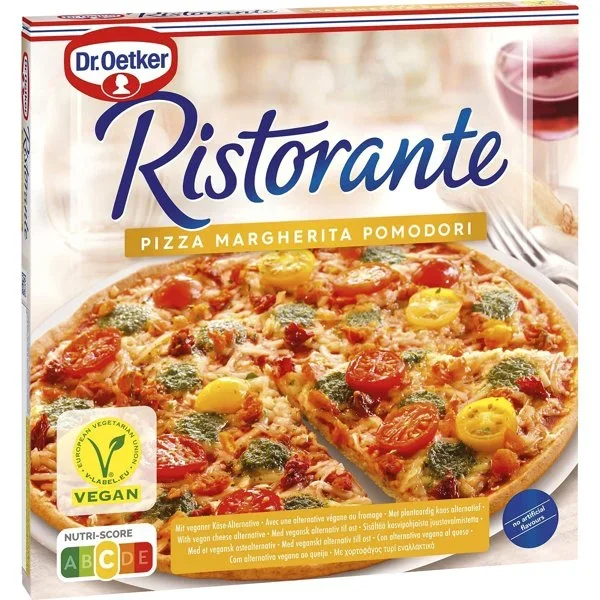 Harina de TRIGO, 13% tomates tamizados, 11% preparado rallado para recubrimiento de pizza a base de grasa de coco (agua, almidón modificado de patata, aceite de coco, sal marina, aroma, colorante (beta-caroteno), antioxidante (ácido ascórbico)), 11% tomates cherry, agua, 6,7% concentrado de tomate, 5,7% tomates secos marinados (tomates secos, aceite refinado de girasol, sal, ajo, plantas aromáticas, acidulante (ácido cítrico)), aceite refinado de nabina, aceite de oliva virgen extra, albahaca, levadura, sal, azúcar, perejil, cebolla, ajo, orégano, pimienta negra, zumo de limón, pimentón, cebolla asada