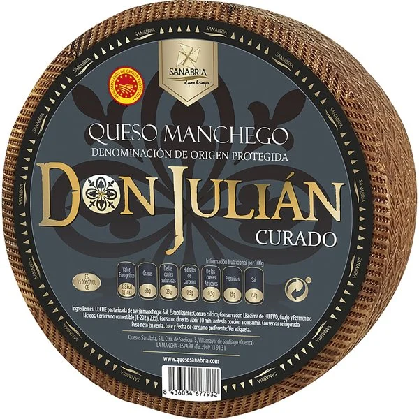 Es un queso Manchego DOP, elaborado con leche de oveja pasteurizada, de la marca Don Julián.