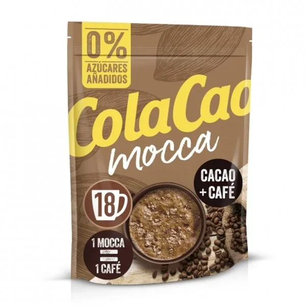Cola Cao Mocca es un cacao soluble con sabor a café, ideal para preparar bebidas calientes o frías.