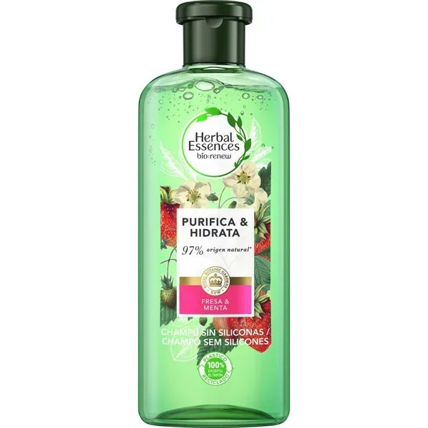 Cada envase de Champú Fresa y Menta Purificante de Herbal Essences contiene 400ml de producto.