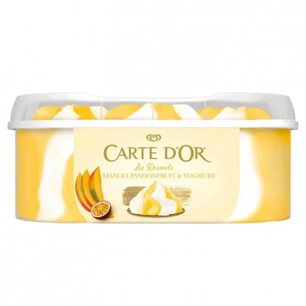 El helado Carte D'Or Les Desserts tiene un sabor a mango, maracuyá y yogur.