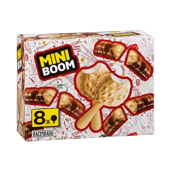 0.48 lHelado mini Boom Hacendado con cobertura blanda de pasta de avellana y galleta troceada