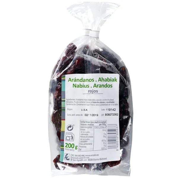 0.2 kgArándano rojo deshidratado EROSKI, bolsa 200 g
