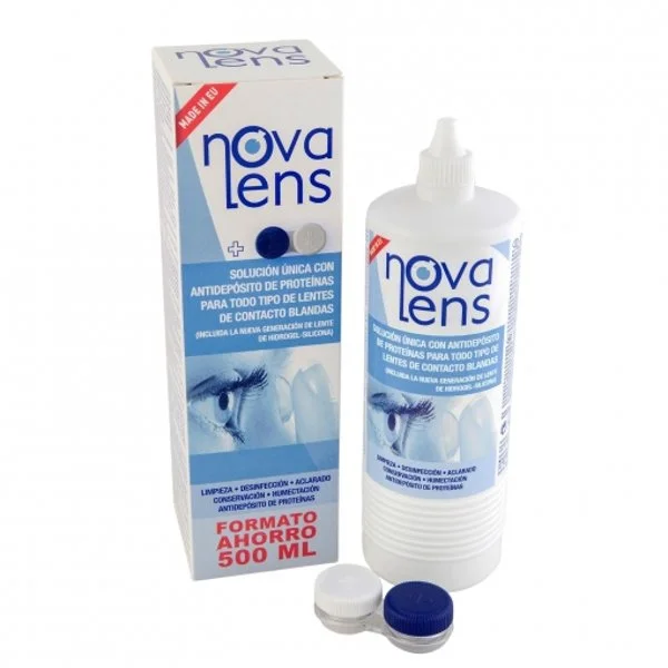 0.5 lSolución única con antidepósito de proteínas para lentes de contacto blandas Novalens 500 ml.