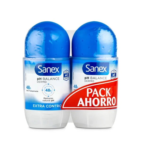 El nombre del producto es Desodorante roll-on Dermo Extra Control Duplo Sanex.