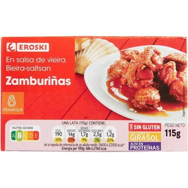 1 udZamburiña en salsa de vieira EROSKI, lata 115 g