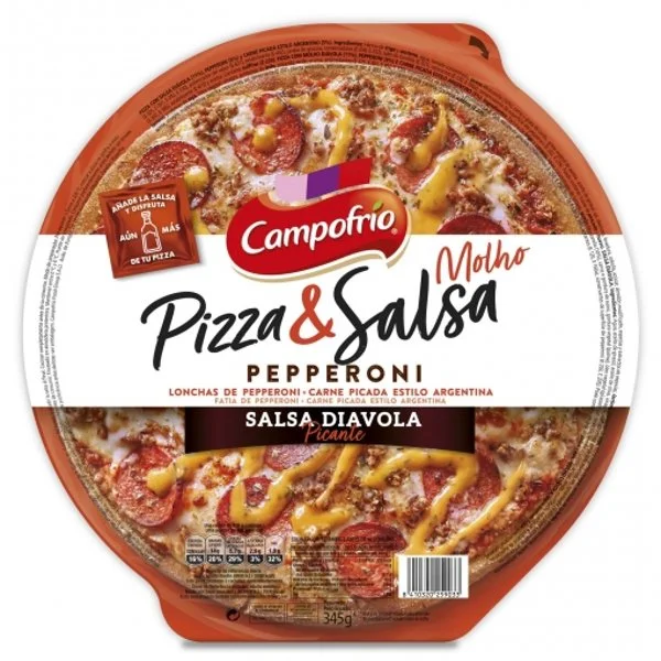 0.36 kgPizza pepperoni con salsa diávolo picante Pizza & Salsa Campofrío 345 g.