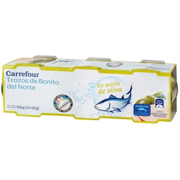 0.16 kgBonito del norte en aceite de oliva Carrefour pack de 3 latas de 52 g.