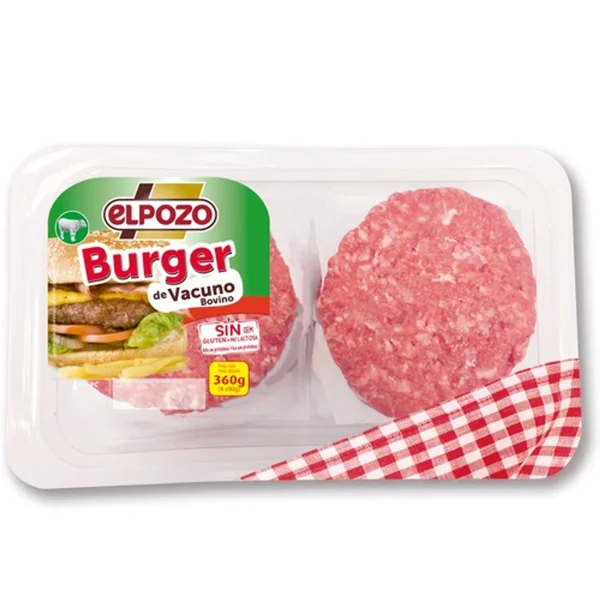 La bandeja de hamburguesas contiene aproximadamente 360g de producto.