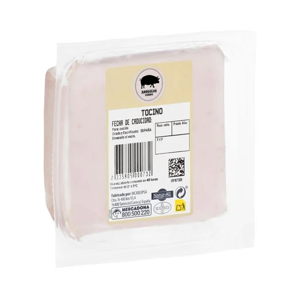 El Tocino de cerdo está disponible en el supermercado mercadona. Su precio actual es de 1.48€, lo que lo convierte en una opción económica para su categoría. Descubre si este producto es la mejor opción para ti.