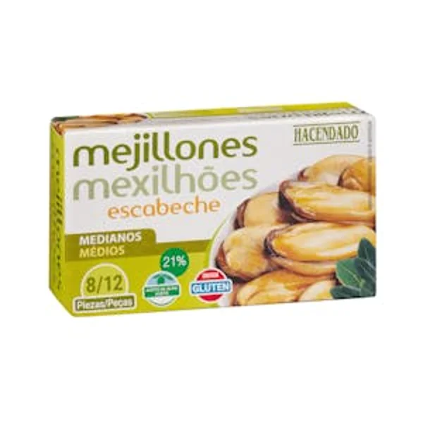 ¿Qué tipo de molusco se utiliza en los Mejillones en Escabeche Hacendado?